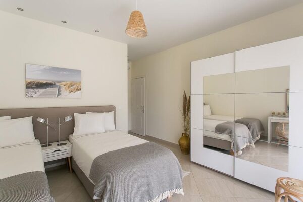Vakantiehuis Villa Panorea is een gelijkvloers stenen huis dat modern en met oog voor comfort is ingericht. De villa beschikt over drie slaapkamers en kan tot vijf gasten huisvesten, ideaal voor families of een groep vrienden. Het interieur combineert moderne meubels met natuurlijke kleuren, en elke ruimte straalt warmte en gastvrijheid uit. Buiten vind je een prachtig zwembad omringd door olijfbomen, compleet met een buitenzitje, stoelen, ligstoelen en een tafel voor ontspannen momenten in de zon of gezellige etentjes in de open lucht. De villa biedt alle belangrijke gemakken, zoals wifi, een volledig uitgeruste keuken, airconditioning en een kluisje, terwijl de schoonmaakservice tweemaal per week zorgt voor een zorgeloos verblijf. Vakantiehuis Villa Panorea is een waar paradijs voor wie op zoek is naar een unieke en rustgevende vakantie op Corfu. Ben jij daar ook hélémaal aan toe? Vergelijk de prijzen en reserveer voordelig. Geniet ervan!