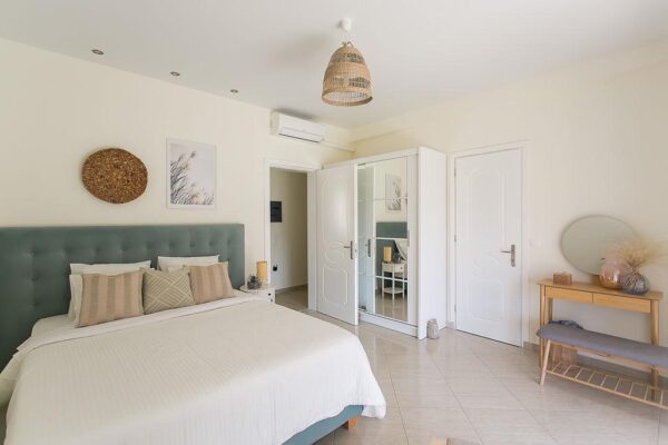 Vakantiehuis Villa Panorea is echt een verborgen parel in het dorpje Pelekas op Corfu, Griekenland. Deze kleinschalige accommodatie is de ideale bestemming voor iedereen die op zoek is naar rust, ruimte en de authentieke Griekse sfeer. Omgeven door de weelderige olijfbomen en met het zachte geluid van schapenbellen in de verte, biedt deze villa een oase van rust ver weg van de dagelijkse drukte. Het vakantiehuis wordt met trots beheerd door de eigenaren Panorea en Nikos, en is een familie-erfstuk dat met veel liefde en aandacht voor detail is ingericht. Het interieur reflecteert een hippe en natuurlijke stijl, perfect voor een ontspannen verblijf. Geniet van een massage, volg eens een yogales, ga afkoelen in het zwembad, of kies voor de luxe van een privékok. Bij Vakantiehuis Villa Panorea staat ontspanning op de eerste plaats.