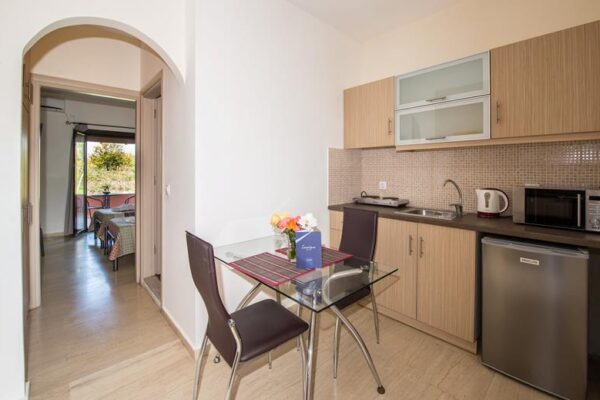 Deze mooie accommodatie biedt studio’s, tweekamer- en driekamerappartementen. Het complex is zeer kleinschalig, waardoor je er echt kunt genieten van rust en ontspanning op korte afstand van het mooie strand. De studio’s zijn voorzien van onder meer een woon-/slaapkamer, een televisie, goed uitgeruste kitchenette, een badkamer met bad of douche en een balkon of terras. Je kunt gebruik maken van airconditioning en wifi. De appartementen hebben één of twee aparte slaapkamers en hebben eveneens een eigen balkon of terras. Wil jij een betaalbare vakantie in Griekenland boeken? Dan kun je nu direct vergelijken en heel voordelig de gewenste accommodatie in Appartement Ionian Blue op Corfu reserveren!