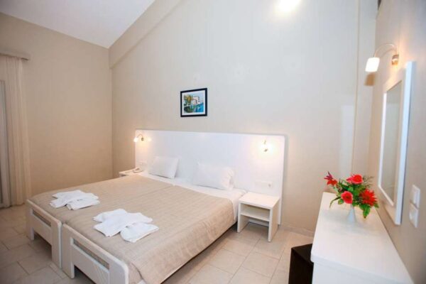 Het Panorama Sidari Hotel beschikt over ongeveer 180 kamers, elk smaakvol ingericht en voorzien van moderne gemakken, zoals airconditioning, gratis wifi en een minibar. Elke kamer heeft een badkamer met douche en een balkon of terras om te genieten van de frisse lucht en het uitzicht. Voor gezinnen zijn er speciale familiekamers met extra slaapruimte, waaronder stapelbedden. De maisonnettes zijn een luxe optie met nog meer ruimte, verdeeld over twee slaapgedeeltes, inclusief een halfopen verdieping. Qua faciliteiten biedt het hotel onder meer een zwembad met ligbedden en parasols, een kinderbad en speeltuin voor de jongste vakantiegangers. Voor de volwassenen is er een tennisbaan en zijn er opties voor biljart en airhockey. Hotel Panorama Sidari heeft echt alle ingrediënten voor jong en ouder, waardoor je kunt rekenen op een onvergetelijke vakantie op Corfu. Nu al zin in?