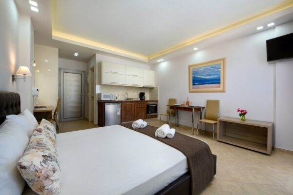 Boukari Beach beschikt over studio’s en appartementen, elk met een eigen unieke charme en volledig uitgerust voor een comfortabel verblijf. De studio’s, geschikt voor 2 personen, hebben twee eenpersoonsbedden of een tweepersoonsbed en zijn voorzien van een kitchenette, badkamer met douche en toilet, en een terras of balkon met een adembenemend uitzicht op zee. De appartementen, geschikt voor 2 tot 4 personen, bestaan uit twee slaapkamers en een volledig uitgeruste keuken met eethoek. Beide slaapkamers bieden comfortabele slaapgelegenheid. Elk appartement heeft ook een terras of balkon met uitzicht over zee. De accommodatie biedt dagelijkse schoonmaak, regelmatige wisseling van bedlinnen en handdoeken, airconditioning, televisie, wifi en kluisjes voor een zorgeloos en ontspannen verblijf. Boukari Beach staat garant voor een heerlijke vakantie waarbij comfort, gemak en prachtige uitzichten centraal staan. Hier kom je echt helemaal tot rust!