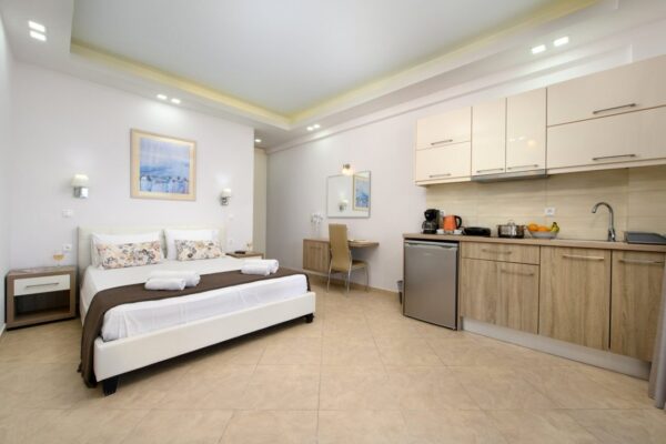 Boukari Beach beschikt over studio’s en appartementen, elk met een eigen unieke charme en volledig uitgerust voor een comfortabel verblijf. De studio’s, geschikt voor 2 personen, hebben twee eenpersoonsbedden of een tweepersoonsbed en zijn voorzien van een kitchenette, badkamer met douche en toilet, en een terras of balkon met een adembenemend uitzicht op zee. De appartementen, geschikt voor 2 tot 4 personen, bestaan uit twee slaapkamers en een volledig uitgeruste keuken met eethoek. Beide slaapkamers bieden comfortabele slaapgelegenheid. Elk appartement heeft ook een terras of balkon met uitzicht over zee. De accommodatie biedt dagelijkse schoonmaak, regelmatige wisseling van bedlinnen en handdoeken, airconditioning, televisie, wifi en kluisjes voor een zorgeloos en ontspannen verblijf. Boukari Beach staat garant voor een heerlijke vakantie waarbij comfort, gemak en prachtige uitzichten centraal staan. Hier kom je echt helemaal tot rust!